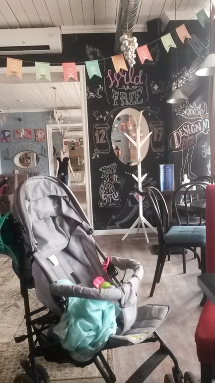 1. кафе рядом с детским магазином BAZBY на ул. Фрунзе, д.20, там удачная детская площадка, огороженная со всех сторон , к тому же на нее можно просто так приходить.