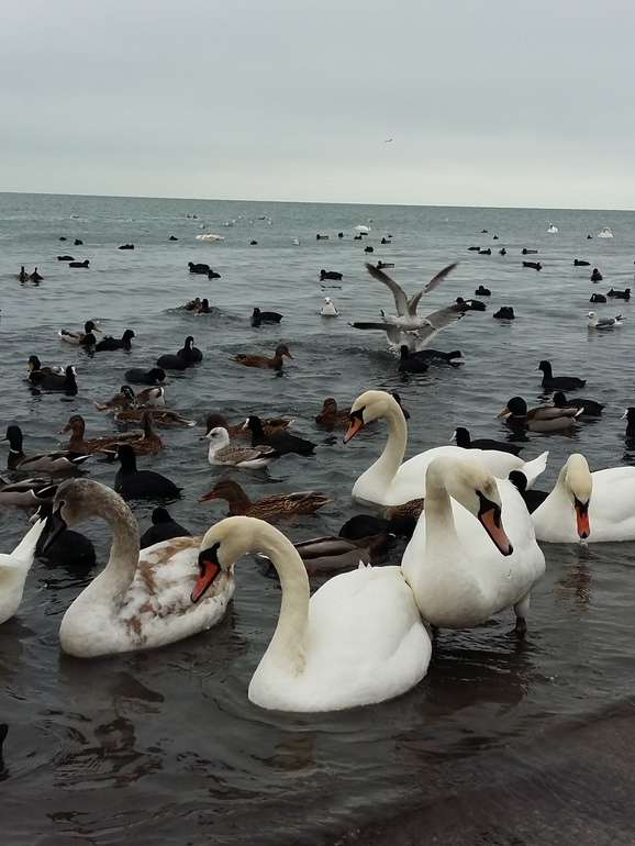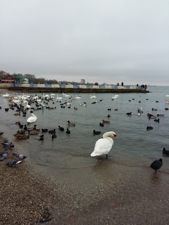 Зимой в Феодосию приплывают лебеди, вот и захотелось поделиться этой красотой с Вами.