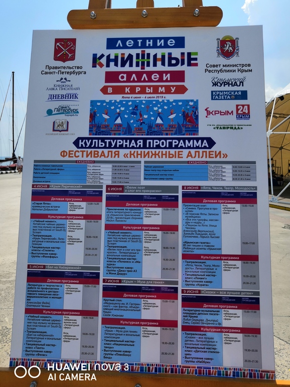 События КрымаЗдравствуйте))) А в Ялте на набережной проходит книжная ярмарка.... Есть киоски с издательствами Крыма и они предлагают в своём роде уникальную литературу.... А ещё работает литературная сфера, где проходят встречи с разными людьми, мастер-классы и концерты кавер-групп)))