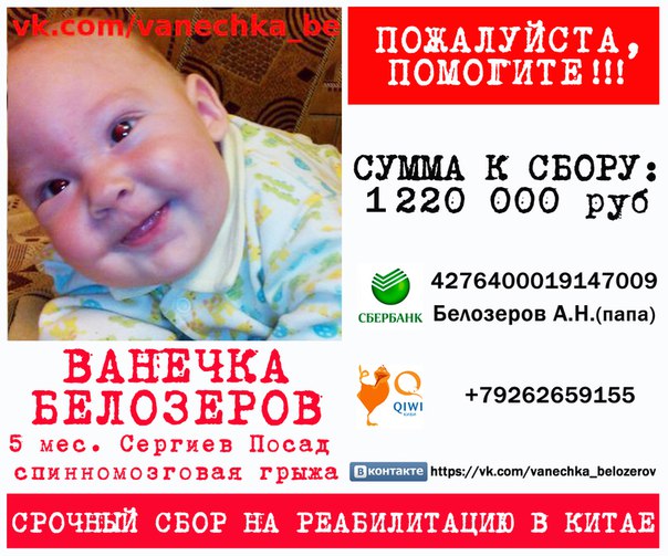 1 220 000 рублей - это очень крупная сумма. Крупная для нашей семьи. Но каждый из Вас, читателей этого поста, может внести даже маленькую лепту, которая не только спасет жизнь маленького Ванюши, но и подарит ему настоящее детство.