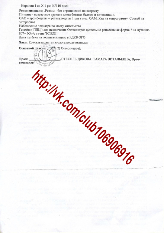 Отчет по поступлениям по 5 января: собрано всего- 3 484 435,23 руб осталось собрать- 10 732 774,9 руб Всем огромное спасибо! А это новости от мамы: Добрый вечер, дорогая наша группа! http://vk.com/club106906916 #глебивановновостиотмамы У нас хорошая новость - к нам приехала наша т.Таня!!! Детки очень обрадовались ей и ее подаркам! Но и ложка дегтя в бочке меда есть ((( Татьяна, педиатр, и осмотрев полость рта Глебушки обнаружила, что состояние зубов у Глебушки ухудшилось по сравнению с началом ноября. А выше зубов на верхней челюсти синюшная кость проглядывает под нежной бледной слизистой верхней десны((( Вы себе не представляете какая истерика у меня произошла когда я это сама увидела! Я знаю, что одна девочка с остеопетрозом тоже вот так вот заживо гнила((( у нее теперь титановая вроде челюсть. Боже,как я всего боюсь, уже не могу ни о чем думать (( Возможно, из-за этого тоже температура держится, кровь мы сдавали в конце декабря и педиатр говорила, что она воспалительного характера(( Сегодня вызвали на дом врача-гематолога... Слава Богу, мир не без добрых людей)) Вот так вот сорваться и приехать! Огромное за это спасибо и низкий поклон! Отметили тактику поведения. Завтра в больницу, после отпишусь о наших новостях. В течение дня у меня перепады настроения от боевой готовности и до истерики... сама не понимаю какие силы меня поддерживают (( Как я еще жива до сих пор и не сошла с ума...а может уже... где эта грань... Благодарю вас всех за поддержку и помощь! И умоляю, не покидайте нас,не оставляйте нас! Без вас не справимся...Спасибо, что вы есть!
