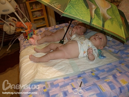 мамка даже ноготочки успела деткам подстрич))) вот зонт-помощник))) Отличная идейка ;)
