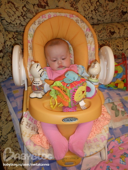 Как только научилась переворачиваться со спины на животик, тут же стала в таком положении брать игрушки и все в рот.