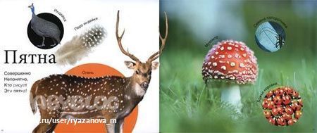 Нетривиальный подход! Обучение построено на нахождении цветов и оттенков, форм, сходств и различий, в окружающем мире. Палитра очень богатая. Великолепная цветопередача. Иллюстрации – отличные фотографии природы (растения, животные, песок/море/небо/камни/снег и т.п.). Параллельно раскрывается красота и многообразие нашей планеты. Ребёнок будет знать не только ёлку да мишку, а броненосца, баобаб, артишок и т.д. Качественная полиграфия.