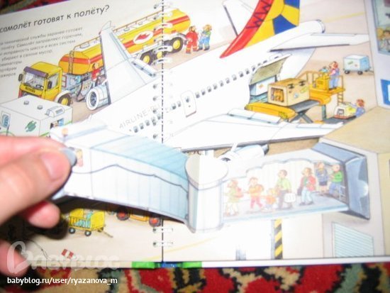 Вдвойне интересней будет всё это рассматривать уже во время путешествия на самолёте, время пролетит незаметно и для вас и для ребёнка. Текста немного: что происходит в аэропорту? Что происходит в зале регистрации? Как самолёт готовят к полёту? Взлёт разрешаю! Добро пожаловать на борт! Где багаж? Где ремонтируют самолёты?