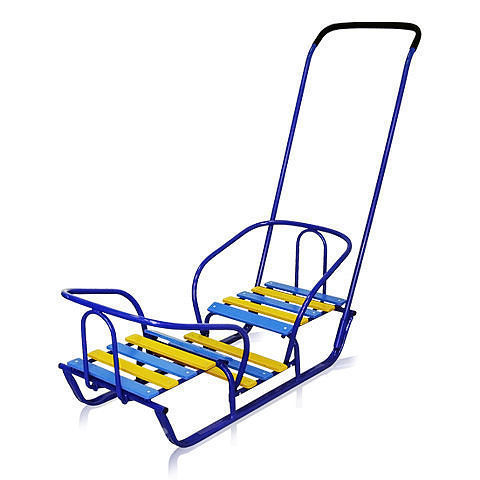 У нас в Твери такие саночки тут купить можно за 1130 руб. разных цветов, отличные санки, широкие полозья, ручка толкатель, да и не тяжёлые, в общем берите советую
