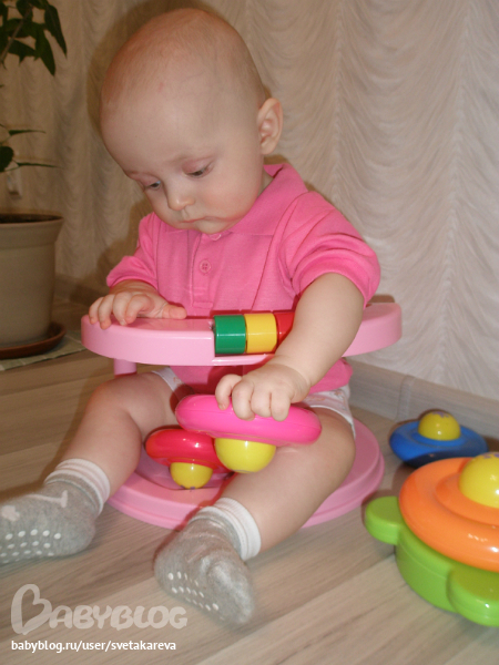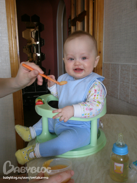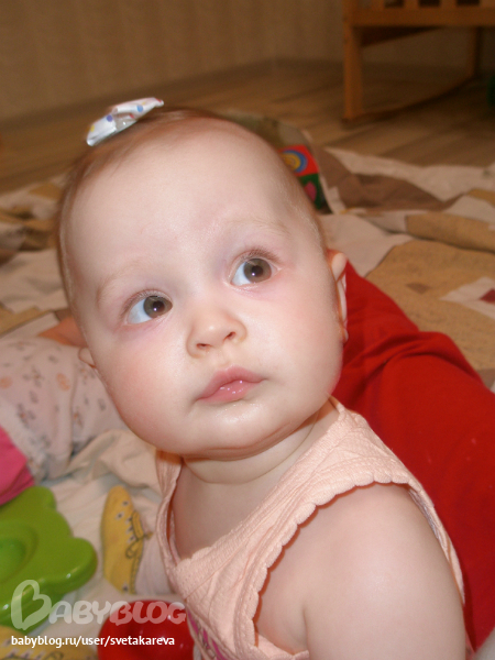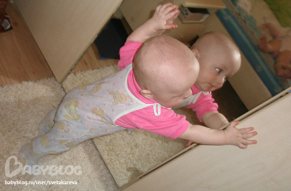 - продолжают экспериментировать, произносить или петь слоги и звуки «да», «па», «ма», «та», «ба». Еще у нас появилось у Ани "Надо!", "Ага или да-да" (и машет головой), у Сани отчетливей "ма-ма", но все это не осознано, но иногда попадает в такт и становится очень смешно)))))
