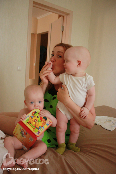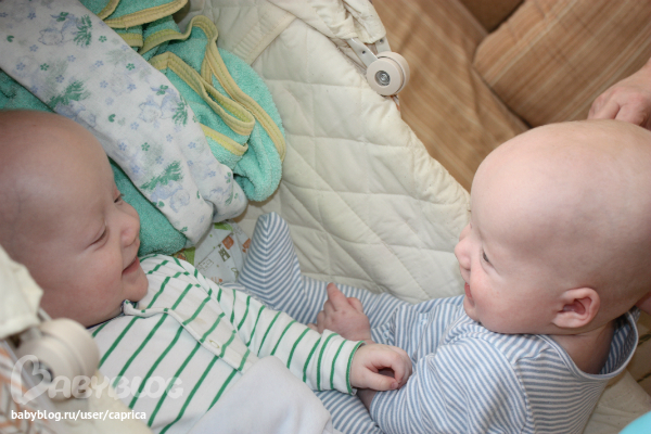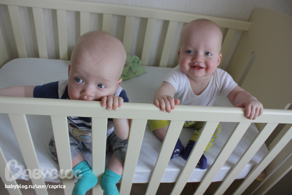 - А зачем нам манеж, - подумала мама и выложила колобков, пытающихся упасть с дивана, прямо на пол!