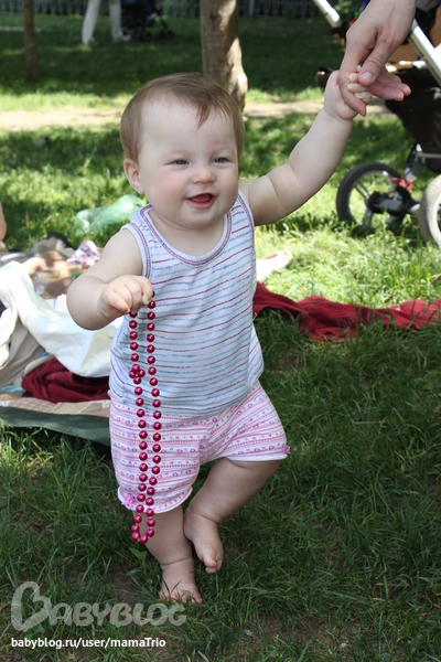 Весь одиннадцатый месяц у нас проходил под знаком "учимся ходить и сразу бегать". Еще не успело исполниться 10, как девочки начали делать первые шаги, причем одновременно, Маша первая, за ней на следующий день Саша. Поначалу три шага, и потом все больше и больше с большим желанием бежать вперед и быстро быстро :)))))