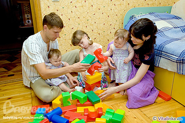 Строить кубики всей семьей, девочки уже сами могут на башенку детали ставить, даешь им в руки, а они пытаются их сложить.Еще научились складывать пирамидку(я даю колечки,они нанизывают) и классная вещь лоток из-под яиц, туда мы вкладываем разные крышечки от йогуртов: