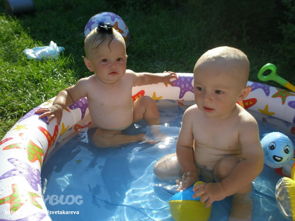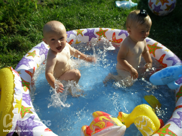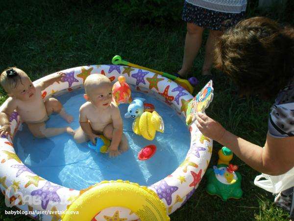 Пока ждали гостей, малышне задарили бабушка с дедушкой первый подарок - новенький бассейн!