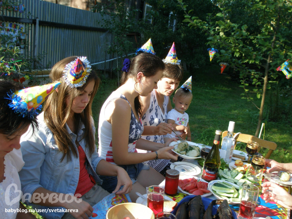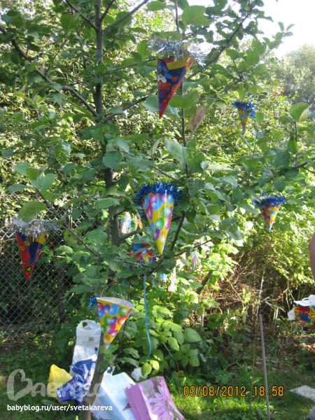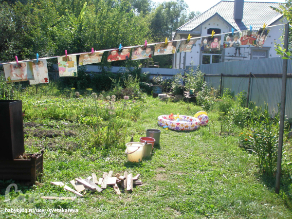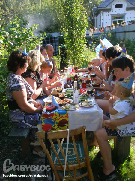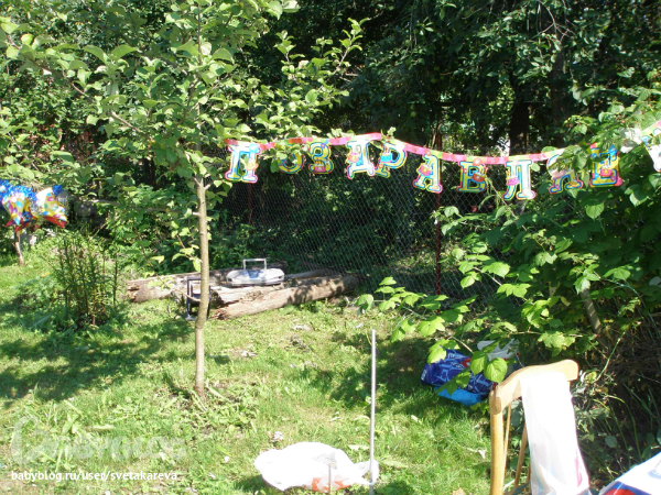 Далее мама побежала в сад-огород всё наряжать к приходу гостей: