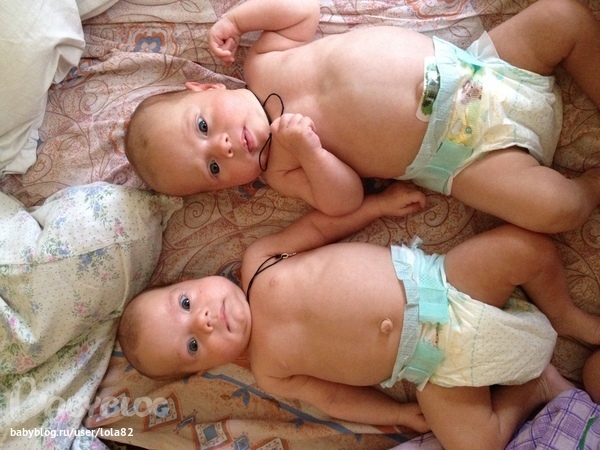 Двойняшки до 1 годаВесим мы 4550 и 5400 (58 см), набираем хорошо, по 1 кг в месяц. Полностью на грудном вскармливании (ГОРЖУСЬ СОБОЙ)