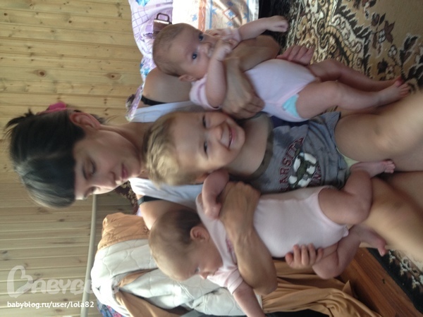 , т к среднего не смогла выкормить грудью, а старшего всего 8 меяцев кормила. Весь июль отдыхали на даче, растут мои доченьки не по дням, а по часам. ЛЮБЛЮ ИХ!!! Очень соскучилась по старшему, он сейчас с моей мамой на море!!!! И немного фоток
