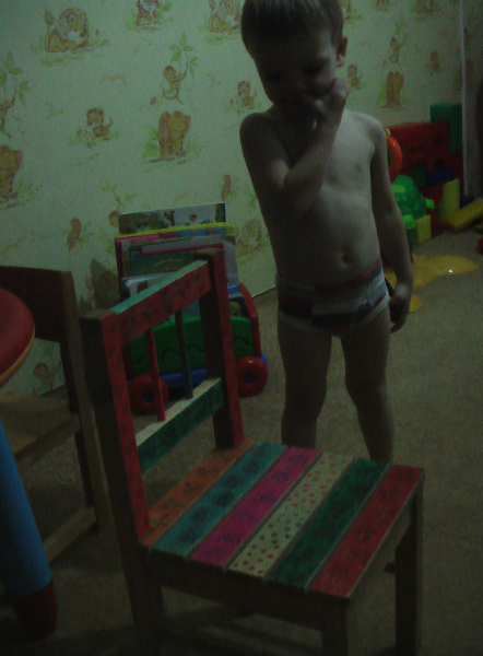 Ну если честно то большую часть конечно мама делала,но малой вымазался так что можно подумать что весь стул красил он)))))))))))))))))))))))