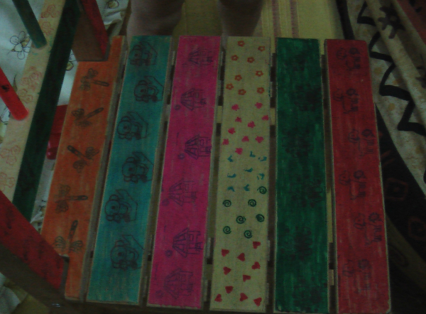 Взяли мы свой старый стульчик и разукрасили его.Так как идея была спонтанная то в ход пошли фломастеры и штампики)))))