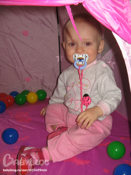 красивый домик.У нас вообще большой домик-брали самый большой,правда интереса на долго не хватило-сейчас собраный лежит-достаю,куогда уже все игрушки надоели.Мы туда тоже шарики насыпали,а потом я туда одеяло постелила и дочька любила туда с игрушкой мягкой залезть и лежать или сидеть(так сказать ,от нас всех отдыхала).А мужья)))ага,ворчат,но мне кажеться,что они тоже в детстве не доиграли,поэтому игрушки и покупают))