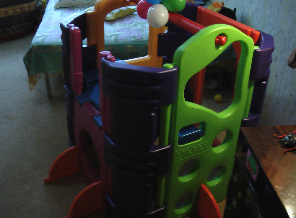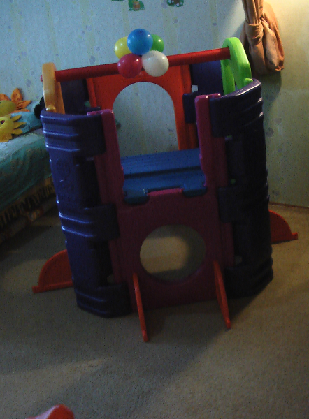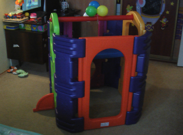 Даже для нашей однушки это шикарный вариант.Пока вижу одни плюсы.Очень легко и быстро складывается и раскладывается,легко передвигается по комнате,горка и лестница в одном флаконе,которая при желание легко снимается и убирается например под кровать ну а про функциональность и говорить не буду сами видите,детям будет интересно