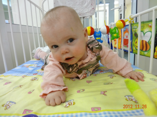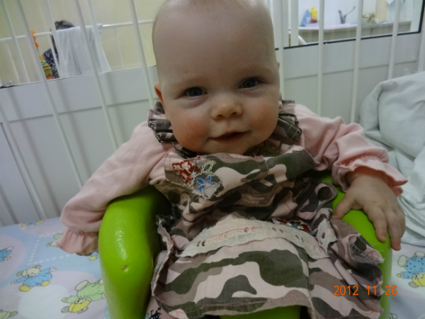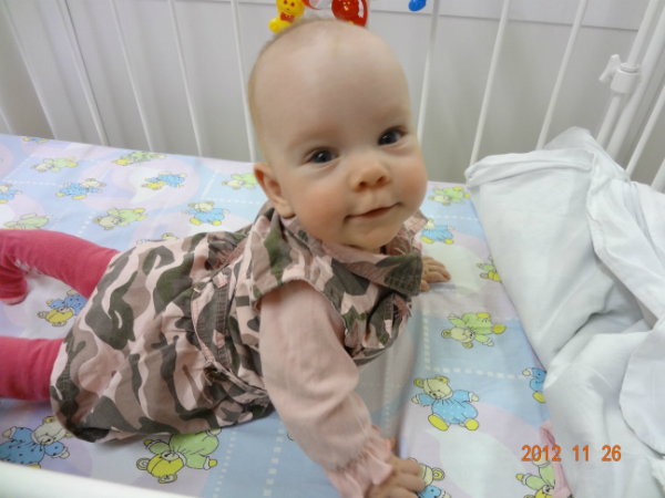За день до того, как должны были лечь Василиса стала на четвереньки, чем удивила и обрадовала. В больнице стала вставать уже уверенней, да и вообще видно, что ее тело все более ей подвластно, и легко вертится вокруг своей оси, ползает назад, достает игрушки и что-то запретное, что ей интересно на раз-два))) Пытается ползти вперед, ноги передвигает, но руки пока не догоняют что делать надо, поэтому чаще всего попытки заканчиваются падением, надеюсь, дома на полу раздуплится что делать надо)) За три дня до 9 месяцев сказала бабабабаб, абабаб и что-то похожее на да или дя, я не поняла, весь вечер болтала, я даже успела видео снять, а ровно в 9 месяцев научилась играть в ладушки, чего я собственно вообще не ждала, тоже видео сняла))) Ну и вчера она сказала МАМА!! УРА! УРА!)) Я дождалась!!!!!! Вот так она быстро училась все делать, что я даже радоваться не успевала))) Плюс у нее уже 2 зуба!! Единственное, что меня огорчает, что она ну очень маленькая и накормить бывает сложно, вес в девять месяцев 6430.