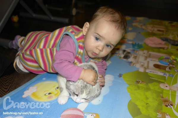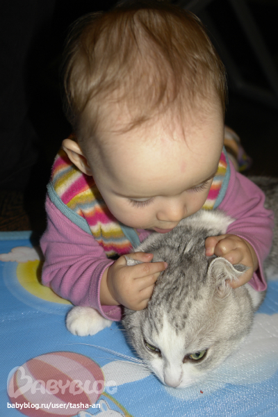 А у нас бедный песик места себе не находит.Куда он,туда и малышки.Он уже рычит,огрызается.Да еще и ему достается от меня,когда сильно рычит:-)Думаю,это еще не конец:-)А у вас котя терпеливый,симпотяга:-)