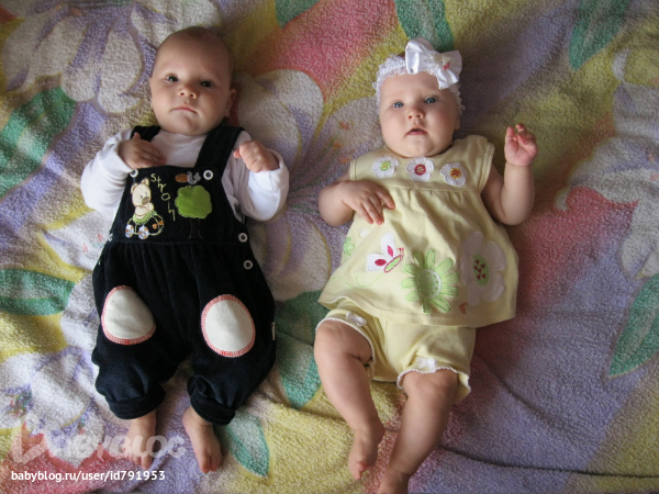Какие сладкие малыши,прям не налюбуюсь.....тттт на вас, здоровья вам и счастья! А сколько весят они у вас в четыре месяца,кажутся такими крупненькими!:)