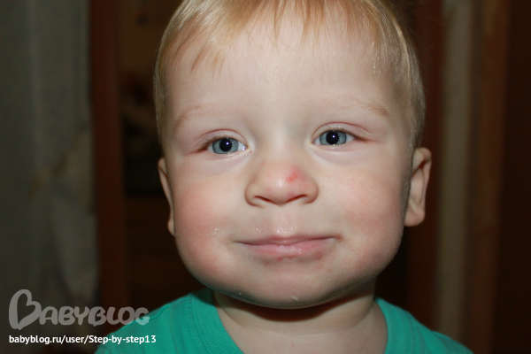 В-общем, детки мои постоянно друг у друга все отнимают, Алиса кусается, Тимоха толкается! Это происходит круглые сутки, за исключением сна! Ну а тут села Алиска на машинку покататся, ну Тиме сразу тоже надо на эту машинку влезть, хотя рядом стоит еще одна. В общем толкать начал он ее, а она не долго думая цапнула его за нос. Я вообще в разборки стараюсь не влезать, т.к. оба хороши. Конечно когда вижу что опасность угрожает кому-то, бегу на помощь. В данной ситуации конечно я жалела сына, т.к. представляю насколько больно носику, приложили лед. А у меня улыбка на лице, ну реально смешно. Травма не сильная, так, царапина как сказал наш папа.