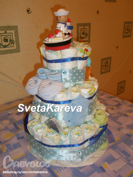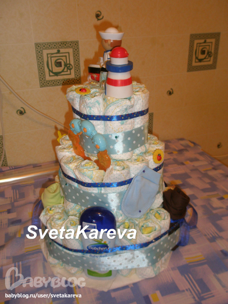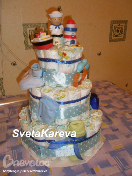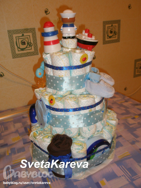 Вместе с детьми и для детейИз этой груды памперсов получился замечательный тортик для морячка))))