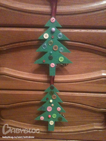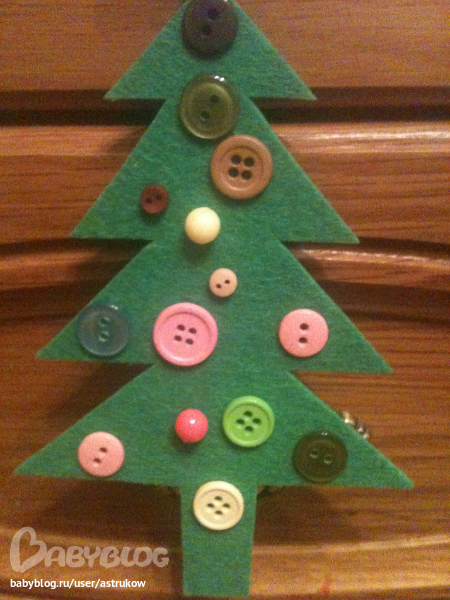 Вместе с детьми и для детейПочти своими руками дети сделали примитивное украшение на елку. Фетр и пуговицы.