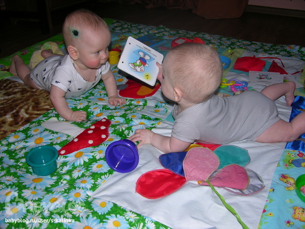 Нам подарили вот такой http://www.taftoys.com/view.php?itemid=10775&lang=ru Он большой 150х100 см - как раз для двоих. А дугу для игрушек я сама сделала. Пользуем с 3 месяцев до настоящего времени и, я думаю, он еще долго будет актуален. Колечки любят грызть, трогают шуршащие нашивки, пытаются схватить нарисованные картинки, и даже в зеркало на себя смотрят. Вещь - супер!
