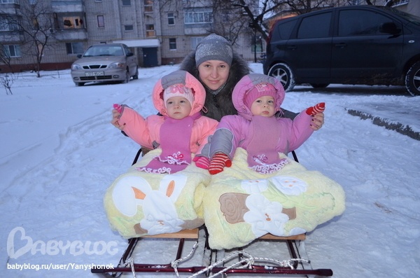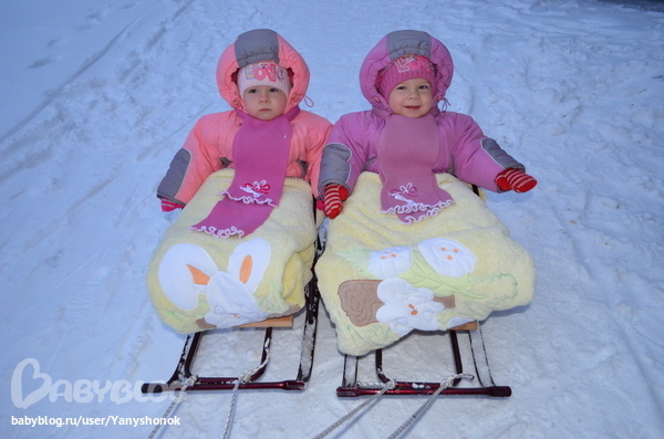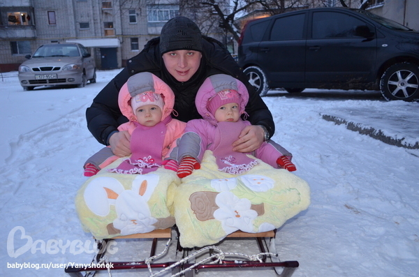 Прогулки с малышамиКаким-то зимним снежным вечерком катались мы в санках...Санок у нас двое, у каждой свои. Помощников у меня много, так что всегда есть кто-то, кто со мной гуляет на улице. Иногда наш папа сам катает их двоих :))) В общем в санках девчонкам нравится сидеть больше, чем ходить ножками, но иногда они просятся походить и тогда идут сзади санок, держась за спинки и толкают их. Вот так мы и гуляем...Морозов сильных у нас нет, сейчас вот на улице днем -1, красота...гуляй сколько душе угодно и детям :)))