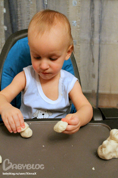 Тем более я прочитала, что помимо развития мелкой моторики, лепка благотворна влияет на нервную систему и показана возбудимым, активным детям, т.е. нам ))