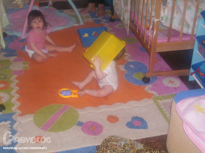 Двойняшки до 1 годаочень давно не показывались всё дела ,заботы Давид уже месяц как ходит Софка пару дней как делает по пару шагов ,весим мы мало ,не дотягиваем даже до 9 кг ,очень подвижные .особенно Давид (и это мой сынок ,который родился 2 кг с диагнозом .задержка внутриутробного развития 2 степени ) болтают по своему играют друг с другом , например Давид одевает на голову коробочку пластиковую а ,Софка по ней бьёт и вдвоём смеются )) играют в ку ку Или Софка лежит а Давид переползает через неё туда сюда ,а она заливисто смеётся))) ну и пару фоток