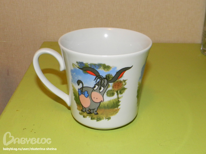 У кружки по кругу разные герои - Пятачок, Винни-Пух и ослик Иа.