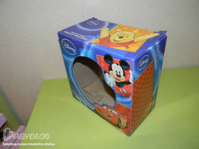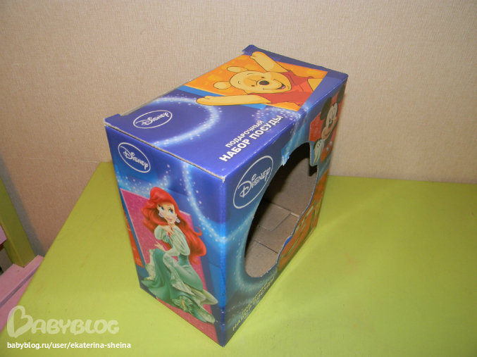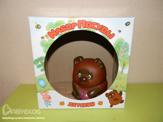 А коробку из под набора посуды дочка использует как домик для своего любимого Апу:) Апу, с ударением на У - это у нас любой медведь. Но Винни-Пух вне конкуренции, самая большая любовь:)))