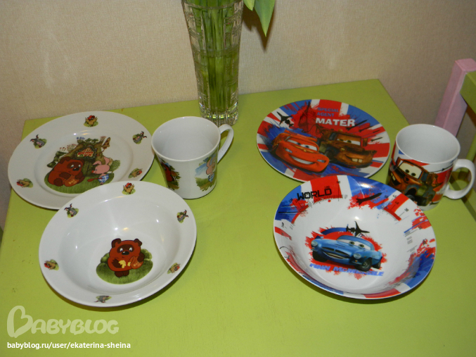 В общем, моим деткам очень нравятся все наши посудные обновки. Если вдруг путаю и даю Лене, например "Тачки" - Ваня очень возмущается, и наоборот. Дети уже чётко знают и отслеживают где-чьё:)))