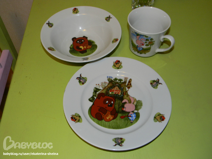 Набор фарфоровой посуды "Винни Пух". Качественный наш дулёвский фарфор. Рисунки яркие, посудка приятная. У меня дочка фанатка Винни-Пуха, обожает свой наборчик.