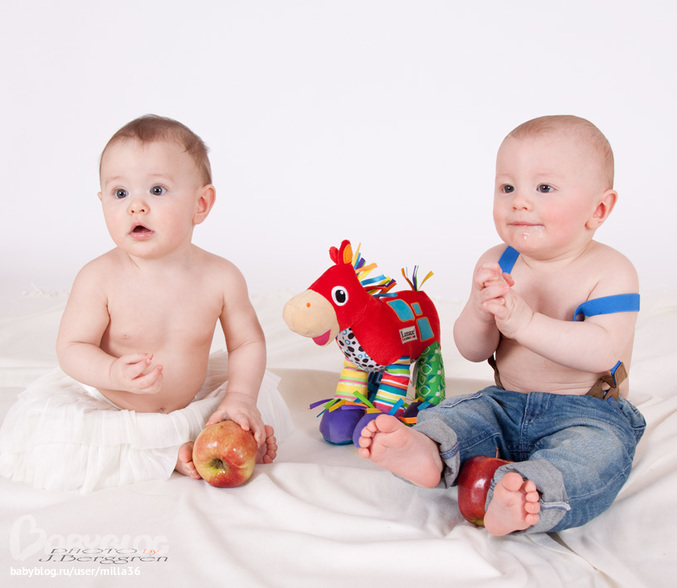 (детям 8 месяцев ,обычно мы спокойные и любим камеру, часто дома фоткаю )),вообщем спасли нас только яблоки , которые я положила чтоб погрызть нам по дороге с дочей ....иначе небыло бы фотографий ...дети разбегались кто куда , ни в какую не хотели ни сидеть , ни на руках у нас ,ни на полу ,стягивали друг у друга кепки, бусы , Девин выгибался постоянно, крутился ..вообщем спасибу доброму фотографу , который совершенно бесплатно имел терпение целых потора часа чтобы как то нас пофототать ...не все задуманное получилась нам воплотить , но.в итоге я довольна,!