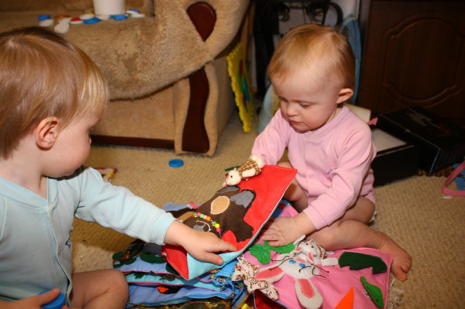 На а так мои солнышки знакомились с новой книжкой.Дочь не хотела никак делиться с братоми постоянно уносила книжку в другую комнату.