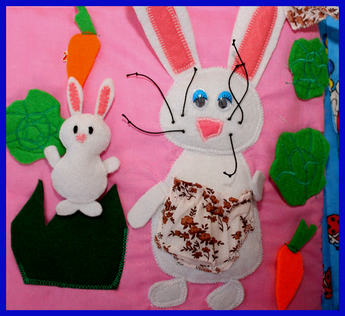 7 страничка.Зайцы.У мамы-зайчихи в карманчике сидит зайчонок(им можно играть отдельно).