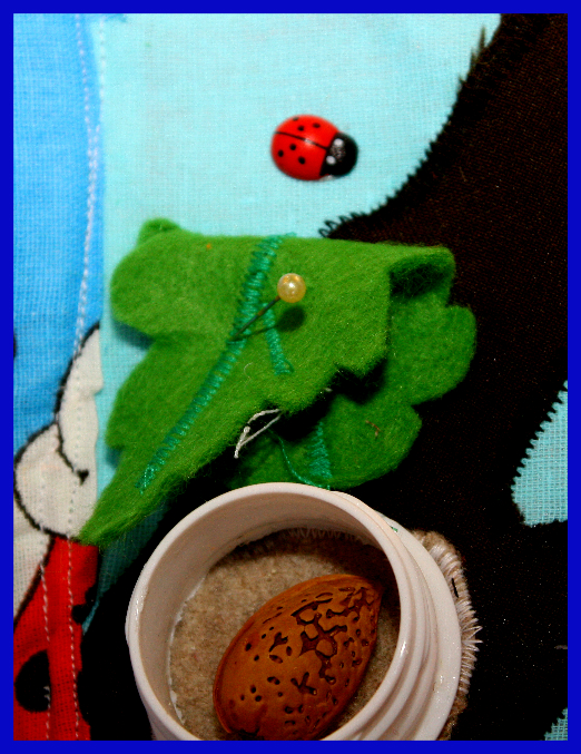 Под дубовыми листиками притаились жучки,а в дупле лежит ,припасенный орешек.