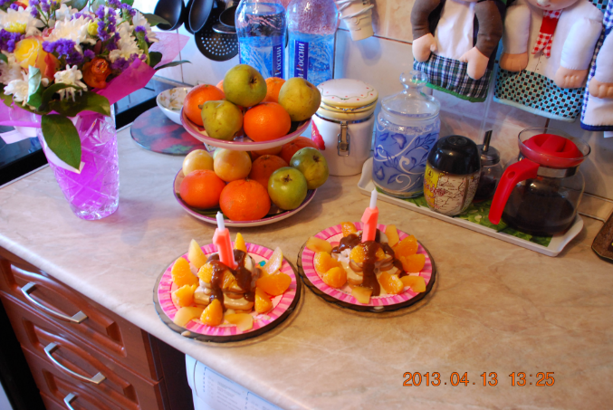 Спасибо! Да, они были удивлены))) Идея с сайта: детское печенье, смоченное в молоке, между слоями смесь творога и фруктового пюре, сверху кусочки фруктов, вокруг тоже выложили, и полили черносливным пюре (смотрелось как шоколад))) гости так и подумали)))