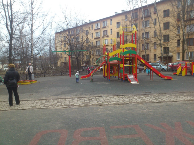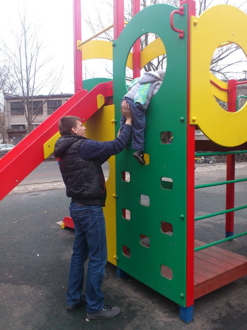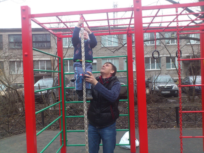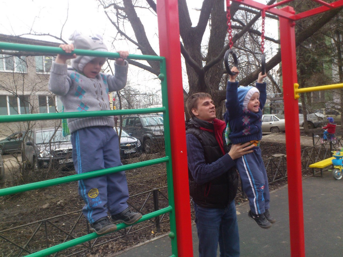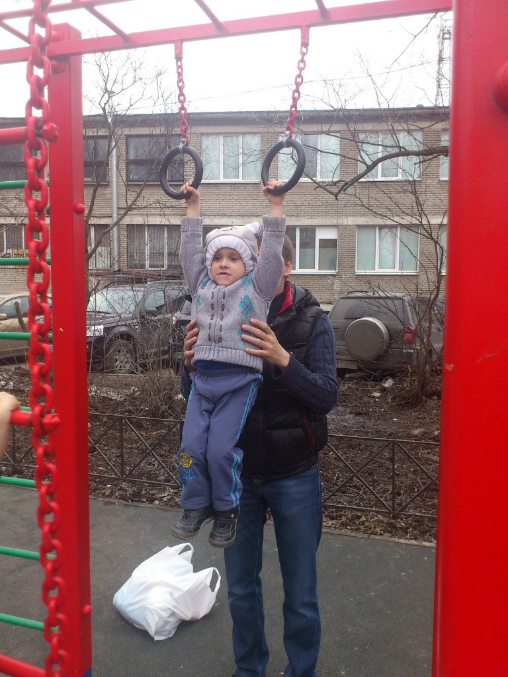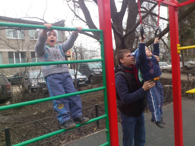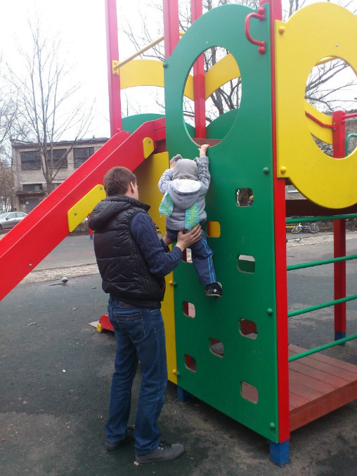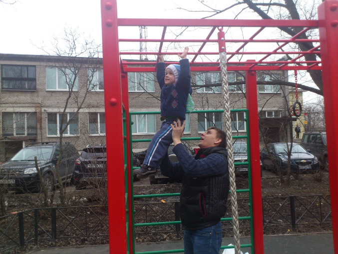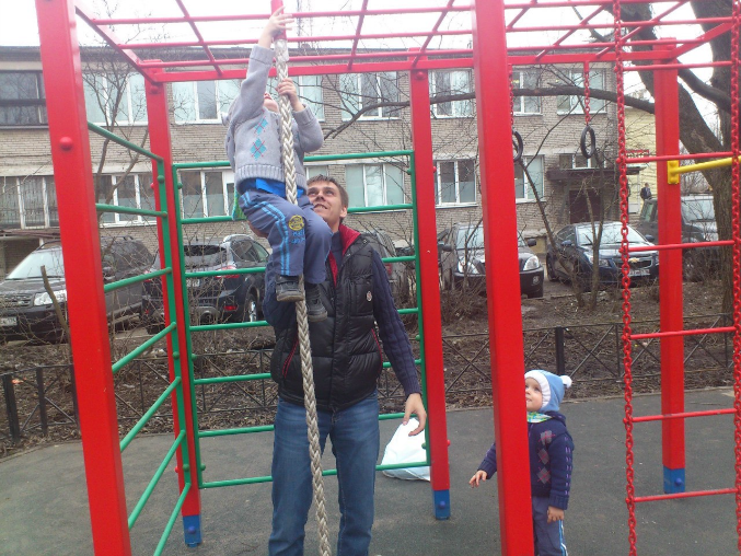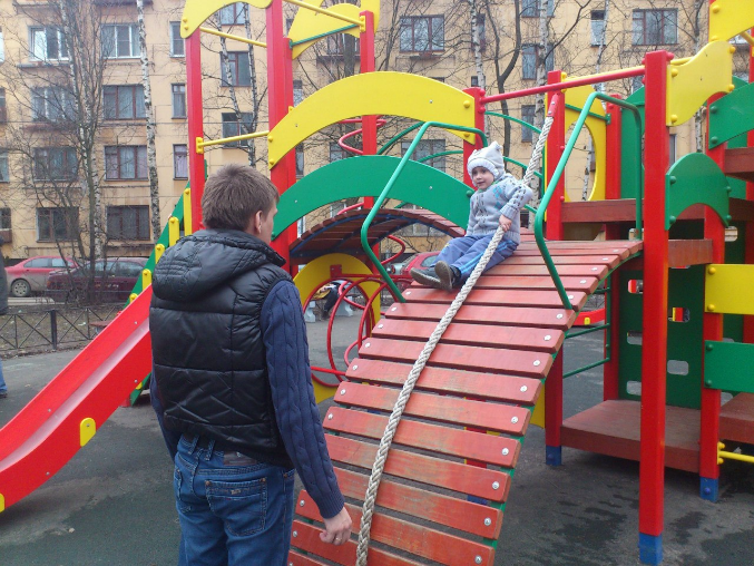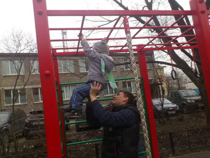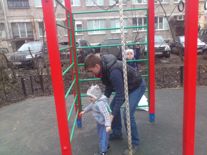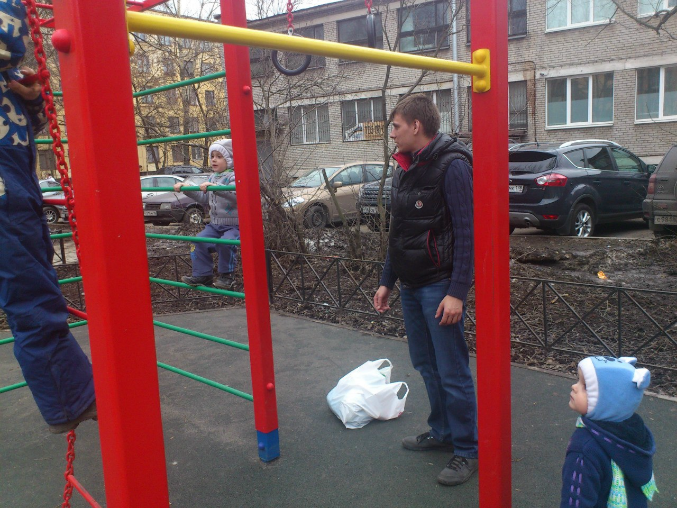 Потом мы потопали в магазинчик, а нас там встретил папочка. И мы пошли через детскую площадку.