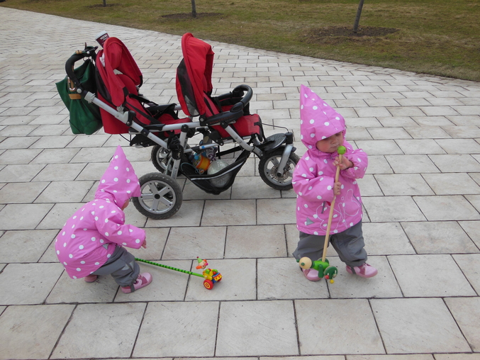 Коляска Jane, я к ней уже привыкла, мне удобно, что она входит в пассажирский лифт с двумя детьми ))) Из неудобство, при поднимании на бордюр она неустойчива, а так в целом довольна ))