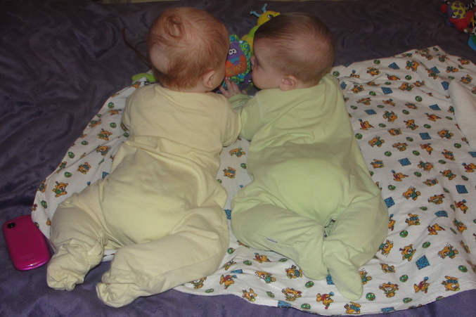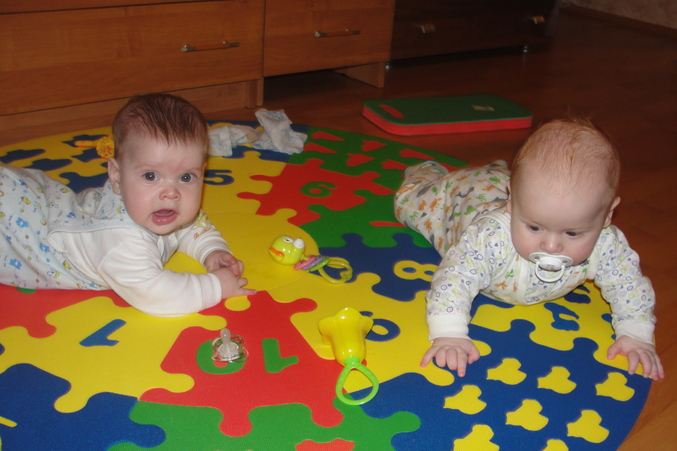 Двойняшки до 1 годаВот и мы добрались до этой классной даты "5 мес"))))) И я понимаю, что кнопики стали такими большими, аж слезы на глазах наворачиваются. А я все время торопила. Скорей бы головку держали, улыбались,смеялись, переворачивались, сели,поползли... Итак немного о наших достижениях))