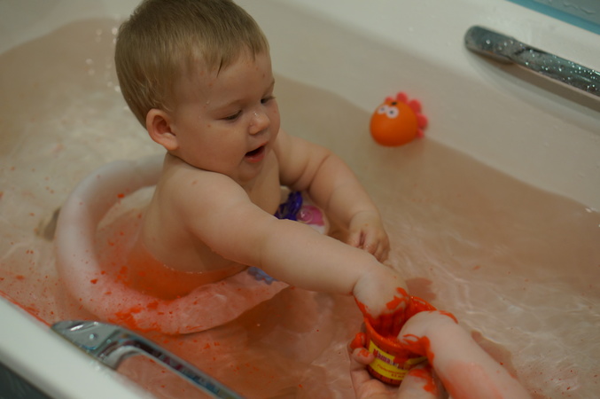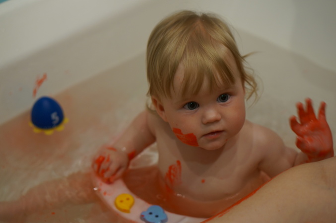 Ну а вечером вдоволь нарисовались красками в ванной:
