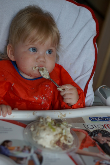которые детки с превеликим удовольствием размазали по всему вокруг съели. Сначала вот так интеллигентно, ложечками: