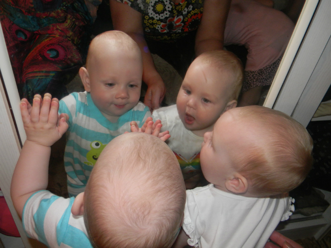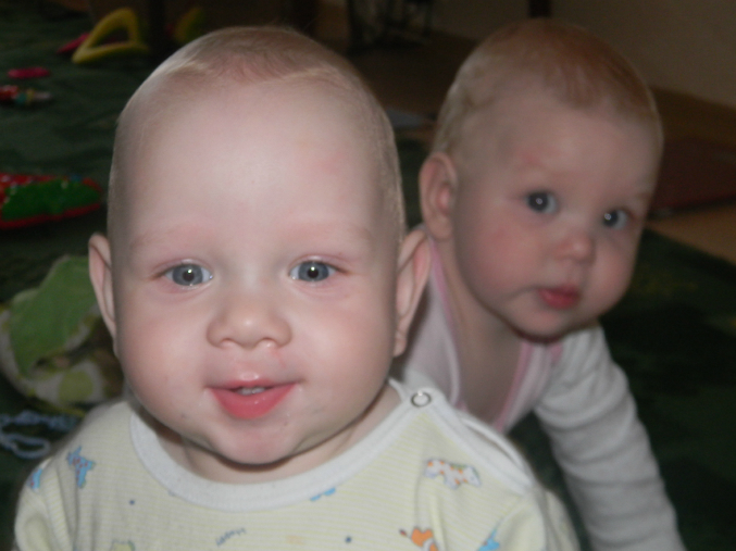 Двойняшки до 1 годаЭтот месяц пролетел быстрее,чем все остальные!За месяц многое изменилось!Начну с Лизоньки.Вес,рост не измеряла,но две недели назад была 8,2кг и 70см.Лизок всё старается,учится,я очень рада ее успехам!Научилась ползать на четвереньках,уже быстро ползает,всё за Тимом гонякает она))Встает на ножки у опоры и потихоньку шагает вдоль опоры.Она очень осторожная,трусишка маленькая))Играет в ладушки,лапочет ма-ма,па-па,ба-ба,ээх,оох))Два зубика,но третий и четвертый ни как не проклюнутся,их прям видно внизу,но чего то не хотят пока вылезти))Любит музыкальные игрушки,сразу хлопает в ладошки и радуется,при виде себя в зеркале готова слезть с рук и обняться со своим изображением))Поменялась местами с Тимоном,если раньше он нам истерики закатывал,то сейчас Тим спокойно играется,а она может ныть,ругаться))Тимоха две недели назад весил 9кг и 70см.Очень быстро ползает на четвереньках,встает у опоры,ходит быстро вдоль опоры,держится за одну руку и стоит,пару раз отпускал ручки и просто стоял,но потом садился на попу)Вообще очень шустрый паренек,улыбашка такой,всем всегда улыбается и стесняется,глазки строит)))Говорит много на своем тарабарском,утром просыпается и сидит играется при этом нашептывает что то,слоги даже не описать)))))Танцор еще тот,только музыка заиграет сразу впляс))Особенно под Gangnam Style,это что то))))Два зуба по-прежнему у него. Кушаем мы смесь,овощи очень любим,мяско с овощами,фруктовые пюре редко,больше грызем их,сушки и сухари наше всё))Огурец пробовали,косточки куриные грызут)))Второй день кушаем овощной супчик,очень нравится им!Купим телятинку и буду готовить уже с мяском супчик.Вчера были у свекров,на столе стояла мисочка с адыгейским сыром,пока тут все внимание было старшим внукам,Лиза не растерялась-стыбзила кусок сыра и сидит наяривает))Понравился так,что когда забрали рев такой был)))Надо будет творожок им дать попробовать,может понравится.На улице любят глазеть по сторонам,отбирать друг у друга шапочки,соски(уже три штуки потеряли соски и одну панамку)))Любим топать на улице,всё норовят сесть и ползти)))Безумно любят Савика,прям лезут к нему,хохочат когда он дурачится)))Тимке вечно нужна именно та игруха,которая у Лизы,поэтому Лиза вечно ноет от него))Он может ползти к ней,сесть прям на нее и сидеть играть в таком положении,а Лиза орет)))Исследовали все уголки квартиры,падала на нас сушилка,полка с обувью,стульчик для кормления,застревали где только можно.Оккупировали кухонные ящики,ванную,коридор и стол компьютерный))Теперь строю баррикады возле компа))Вообще как стали ползать,сидеть и стоять мне стало легче!Они могут вдвоем играть долго,если Савик дома то вообще красота!Папу нашего выписали,теперь ездим гулять по паркам,благо погода приходит в себя))Савёнок выздоровел,за две недели его отсутствия он как то вырос,стал такой интересный!На счет садика пока ни чего не известно((За две недели пока я была одна с двойнятами я приучила их засыпать в 21-21.30(теперь вечернее время свободное)),просыпаются на покушать раз за ночь,дневной сон тоже наладила им;научилась сама с собой разговаривать в слух(а то одна ж была дома),ходить одна с ними в магазин(сажала их в корзину и нормуль)),похудела на 1кг
