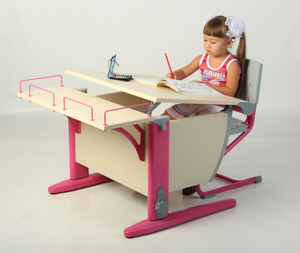 Есть парты, которые растут по мере роста ребенка, то есть можно регулировать высоту. Стол может быть горизонтальный относительно пола или подниматься под углом, сбоку есть полочка для книг, тетрадей, есть место для подставки для учебников и прочих принадлежностей, сбоку крючок для рюкзака и к парте также продается стульчик, который тоже можно регулировать по высоте. Супер функциональная вещь и места много не занимает. Я такую парту покупала младшему сыну как раз к первому классу. Сейчас мы в шестом и до сих пор ей пользуемся. Есть Moll, но он очень дорогой, а есть русский аналог (как раз у нас такой)Вот такая у нас только вместо розового цвета - серый: