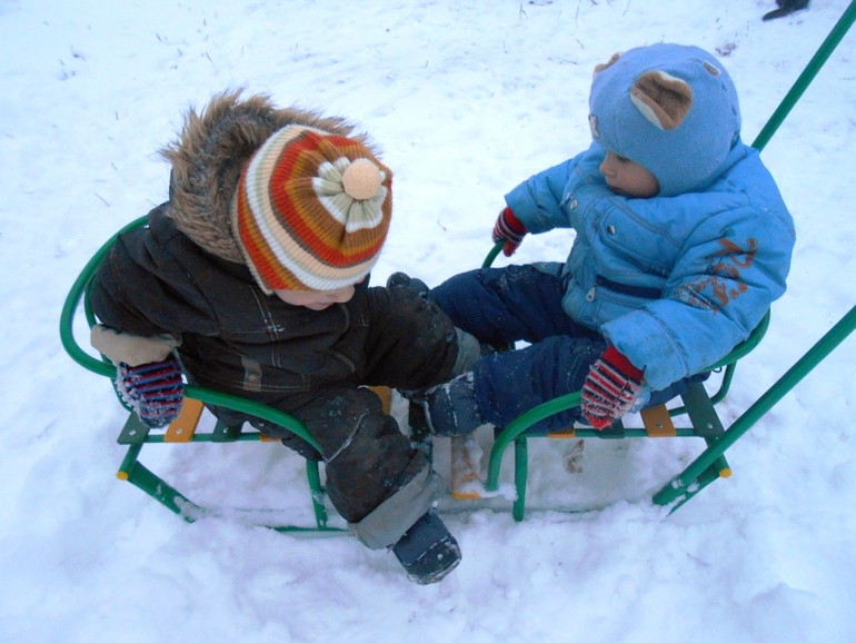 Двойняшки от 1 года до 3-хМамочки близнецов,покажите свои санки,на каких вы катаете зимой своих деток?какие удобные,какие нет?Нам вот 1 год и 7 мес стукнуло.От коляски пока отказываться не будем,все таки удобно.А про сани вот совсем ничего незнаю..Покупка нужна для передвижения по снегу,и вопрос : для катания с горок что покупать?