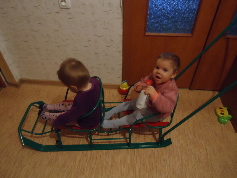 Покупки для наших малышей - хвастаемсяСегодня прибыли наши саночки из Нижнего Новгорода. Пока катались по коридору. Девчонкам понравились, долго сидели в них. http://www.babyblog.ru/redirect?v=1&l=http%3A%2F%2Fmishytka-nn.ru%2Findex.php%3Fid_page%3D8%26id_catalog%3D2380 Мне, в принципе, тоже понравились. Санки других производителей я вживую не видела, сравнить не с чем. Эти довольно-таки легкие, места детям достаточно, но ручка-толкатель, на мой взгляд, хлипковата.